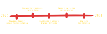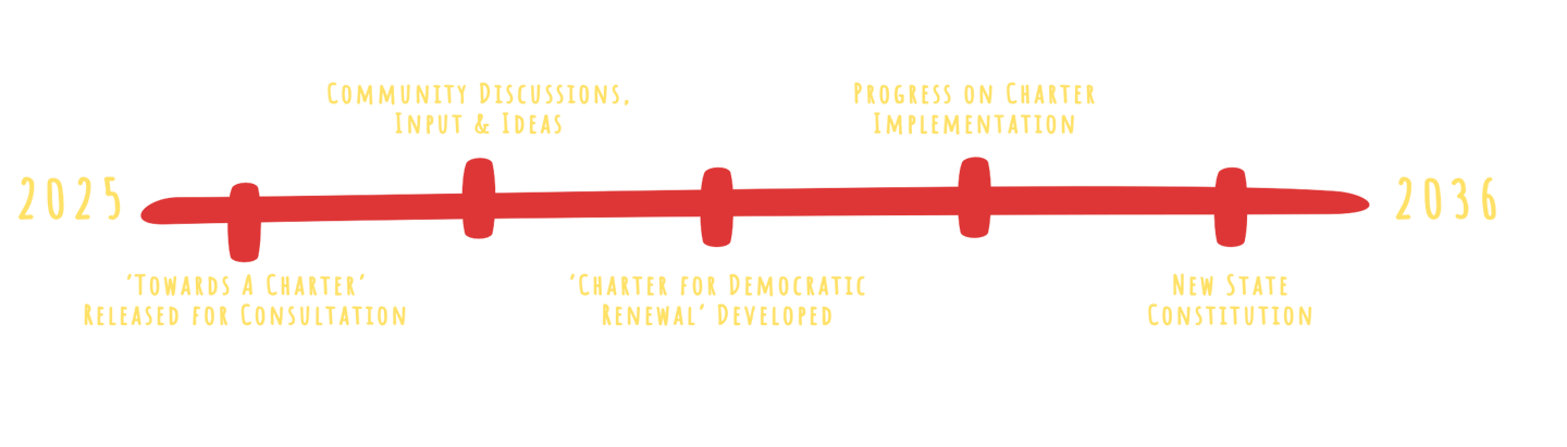 Dem36 is on a 10-year mission to renew South Australian democracy. Our goal is to work with the South Australian community to develop a Charter for Democratic Renewal, setting out South Australians' ideas (or demands!) for improving the way we do democracy in our state. Using the Charter, the Dem36 team will advocate for tangible reforms to our democratic systems—in particular, to inform and build momentum for a new state constitution in time for our state's bicentenary in 2036.